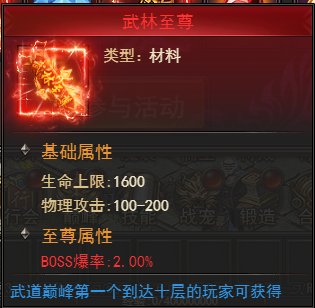 2. 击杀怪物或玩家获得积分,达到积分进入下一层,最先登顶的玩家获得“武林至尊”称号。第十层商人低价出售特惠商品。