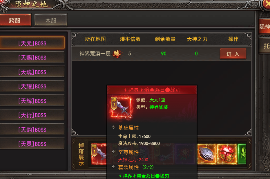 神界大陆开启后可在大陆内最中间陨神之地、伏羲界等打怪获取普通战装,战装上会随机出现属性词条。