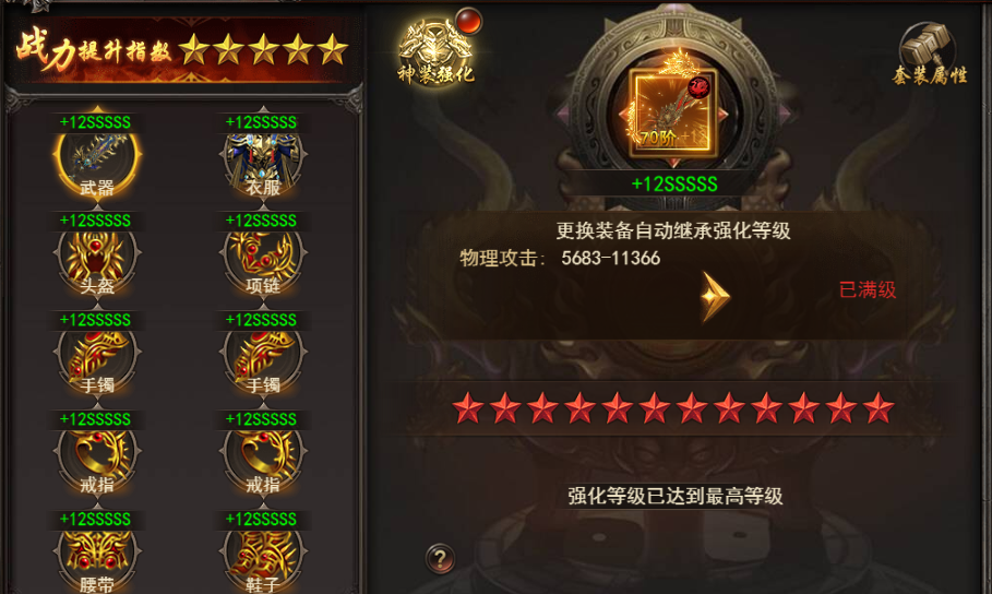 3.强化神装之后,会对神装的基础属性进行一个升级,如果中途需要更换更高阶的神装的话会自动继承强化等级的
