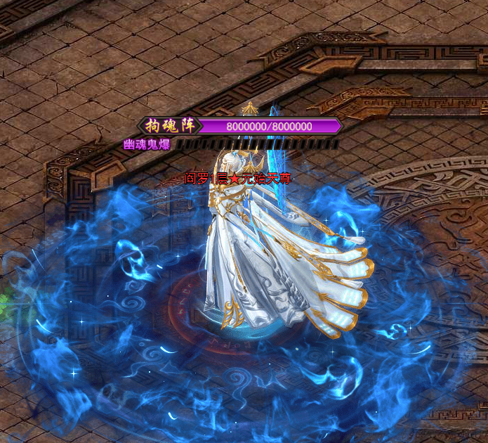 进入地图会有一个怪物,怪物上面有显示“拘魂阵”,需要用神圣伤害去破除阵法(也可获取幽冥大陆装备,对怪物都会有效果),拘魂阵受击达到一定次数会爆炸(下方进度条),会对附近玩家造成巨额伤害。
