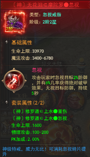 3.忽视特戒可以消耗忽视碎片提升等级,可以加强基础属性,忽视碎片可以在游戏里活动中获取,或者用钻石直接购买。