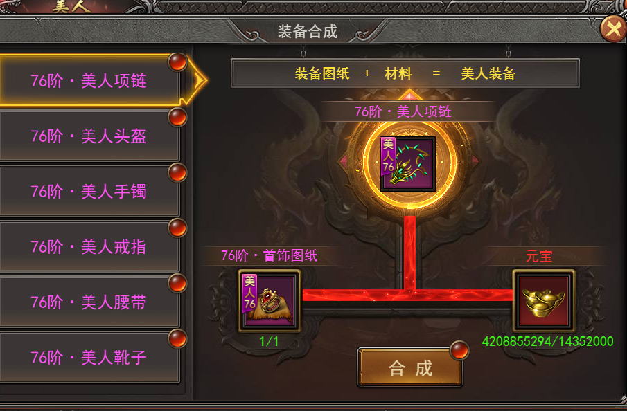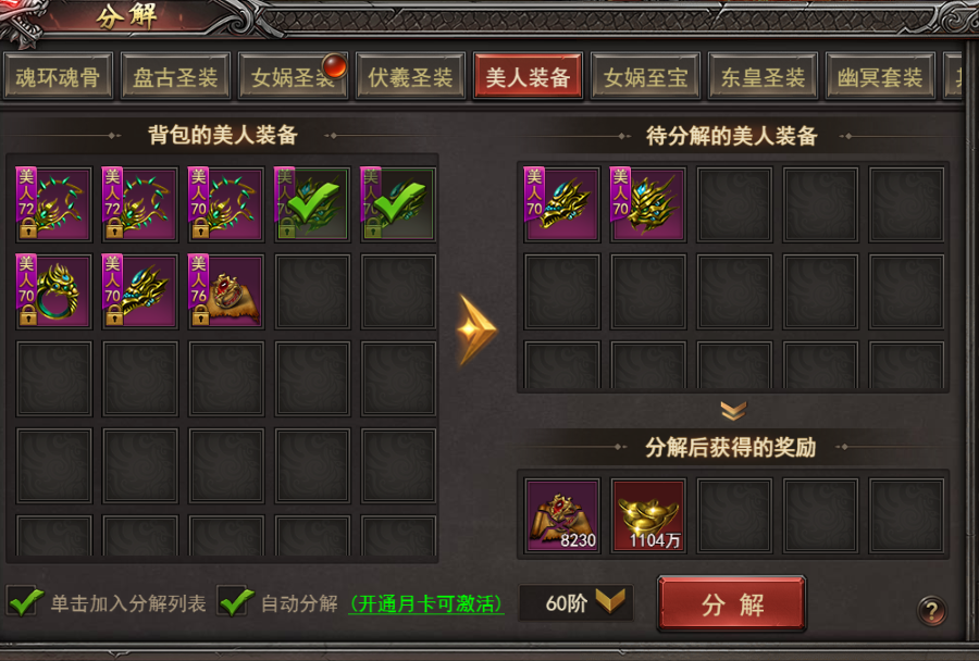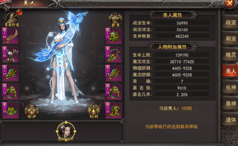 7、美人装备目前最高100阶