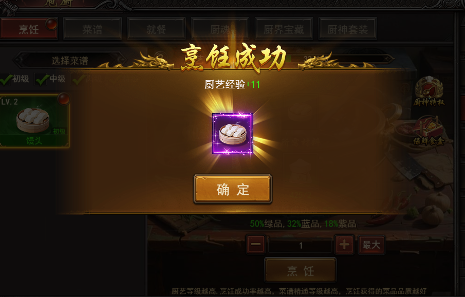 前情提要:庖厨玩法为副职按钮内其中之一玩法,在开服95天100级开启对应玩法。